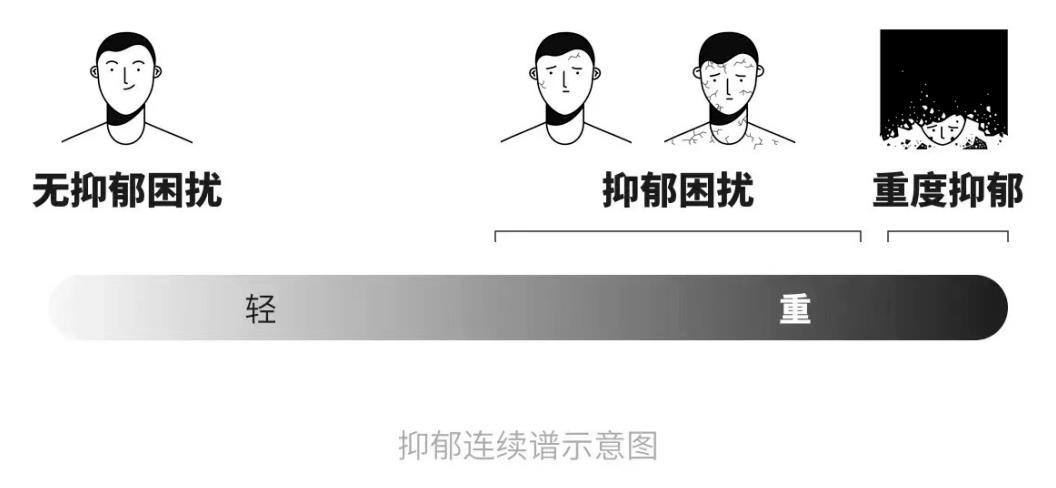 你可以把情緒困擾的程度,想象成一個(gè)連續(xù)的光譜。從完全沒(méi)有癥狀,到嚴(yán)重持續(xù)的困擾,你都可以在這個(gè)光譜上找到自己的位置。