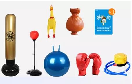 如適合兒童的充氣宣泄柱、慘叫雞、宣泄球、宣泄手套、宣泄臉譜、宣泄掛圖等等,通常作為宣泄室輔助器材。