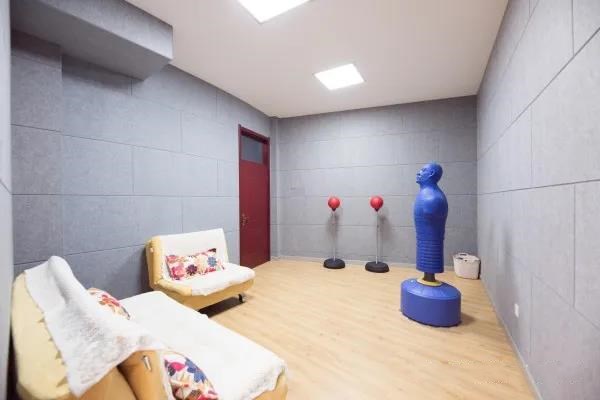 這8個(gè)區(qū)域各有其功能:辦公區(qū)供心理咨詢教師辦公,開展工作;接待區(qū)供來訪者等待和預(yù)約,方便輔導(dǎo)老師接待;閱覽區(qū)提供有專業(yè)心理書籍和雜志,供師生閱覽;沙盤區(qū)供學(xué)生做沙盤游戲,來訪者挑選玩具,在沙箱里進(jìn)行自我呈現(xiàn);一對(duì)一咨詢區(qū)供來訪者傾吐心聲,排解心理壓力;放松區(qū)提供有專業(yè)的放松設(shè)備,供來訪者放松平復(fù)狀態(tài);宣泄區(qū)提供有宣泄人、宣泄球等專業(yè)的宣泄設(shè)備,供來訪者宣泄負(fù)面情緒;團(tuán)體活動(dòng)區(qū)提供專業(yè)的活動(dòng)場(chǎng)地和桌椅,學(xué)生可上課或者做團(tuán)體心理輔導(dǎo)。